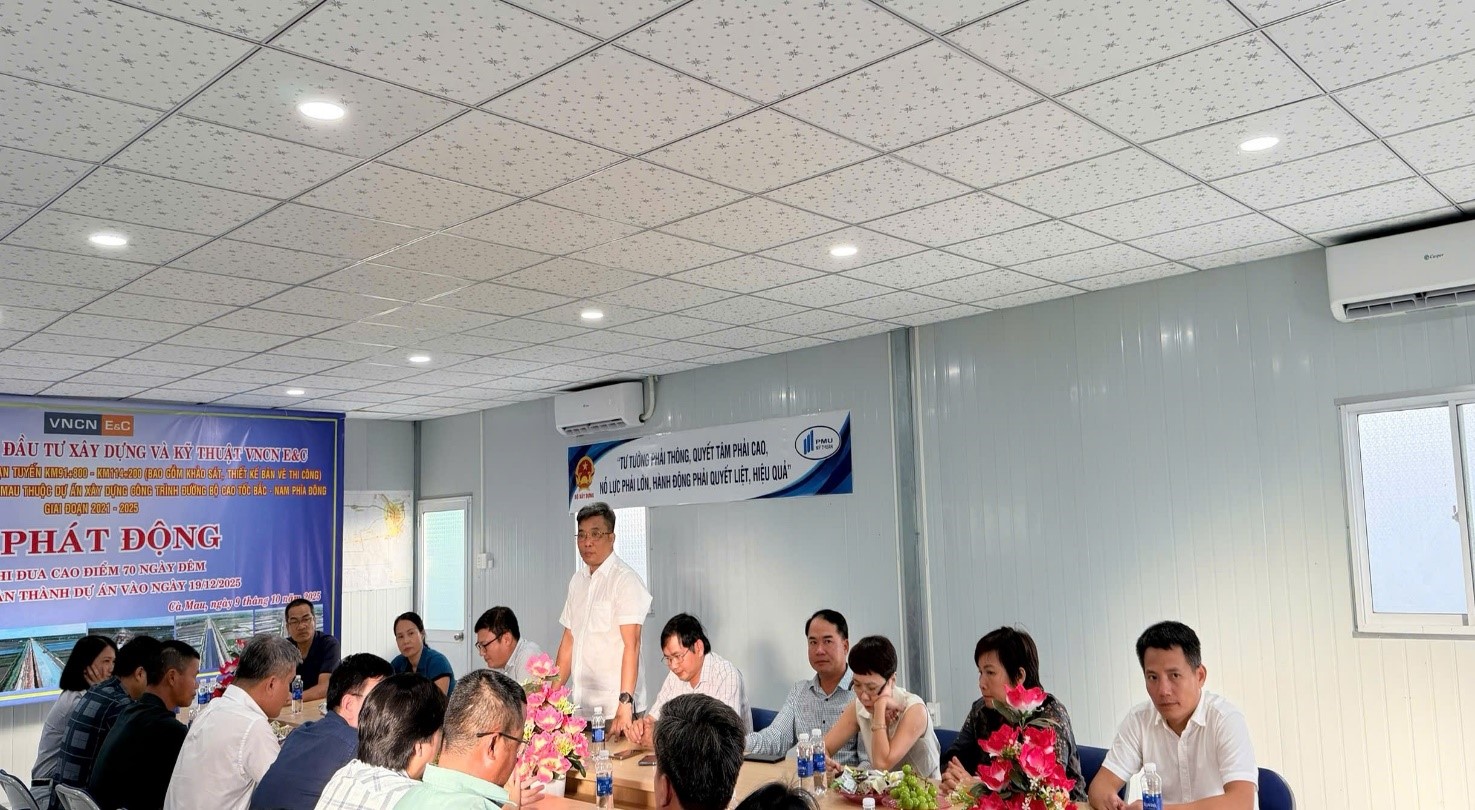 On October 9, 2025, VNCN Engineering Construction and Investment Joint Stock Corporation (VNCN E&C) organized the launching ceremony for the peak-emulation campaign “70 days and nights racing to complete the project by December 19, 2025”. This movement aims for decisive action, creation, achievement, and victory across two of the Company’s key construction sites, which are the construction of the entire route (including survey and design of shop-drawings) of Can Tho – Hau Giang expressway, and the construction of Package XL-02: Km91+800 – Km114+200 (including survey and design of shop-drawings), under Hau Giang – Ca Mau component project of the Eastern North-South Expressway Construction Project, phase 2021–2025